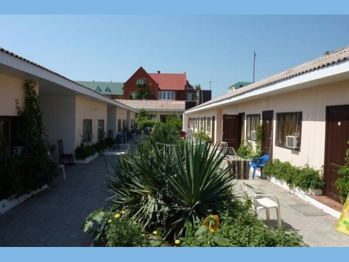 Гостиница «Аксом» расположена в самом центре курортного посёлка, на центральной пешеходной ул. Ленина. Рядом расположены кафе, бары, магазины. В 100 м пляж и прекрасная набережная. 1-этажные корпуса огорожены 2-местровым забором, имеется внутренний дворик с пластиковой мебелью, детская горка, качели. Благодаря открытому морю, чистому воздуху, окружающим горам и многочисленным развлекательным программам посёлок всегда был центром семейного и молодёжного отдыха.